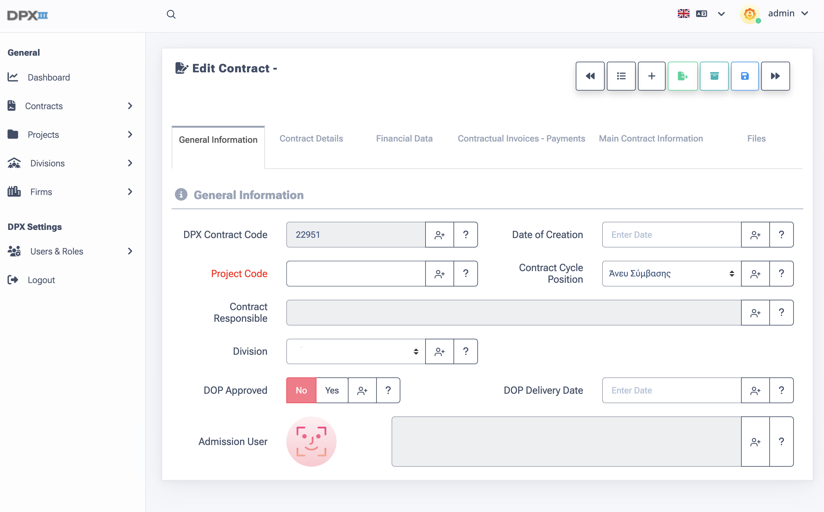 Every single entity on site, like a Division, a User Account, a Role, a Project, a Contract is able to have its attributes customized on-the-fly by its own, dedicated, control panel.